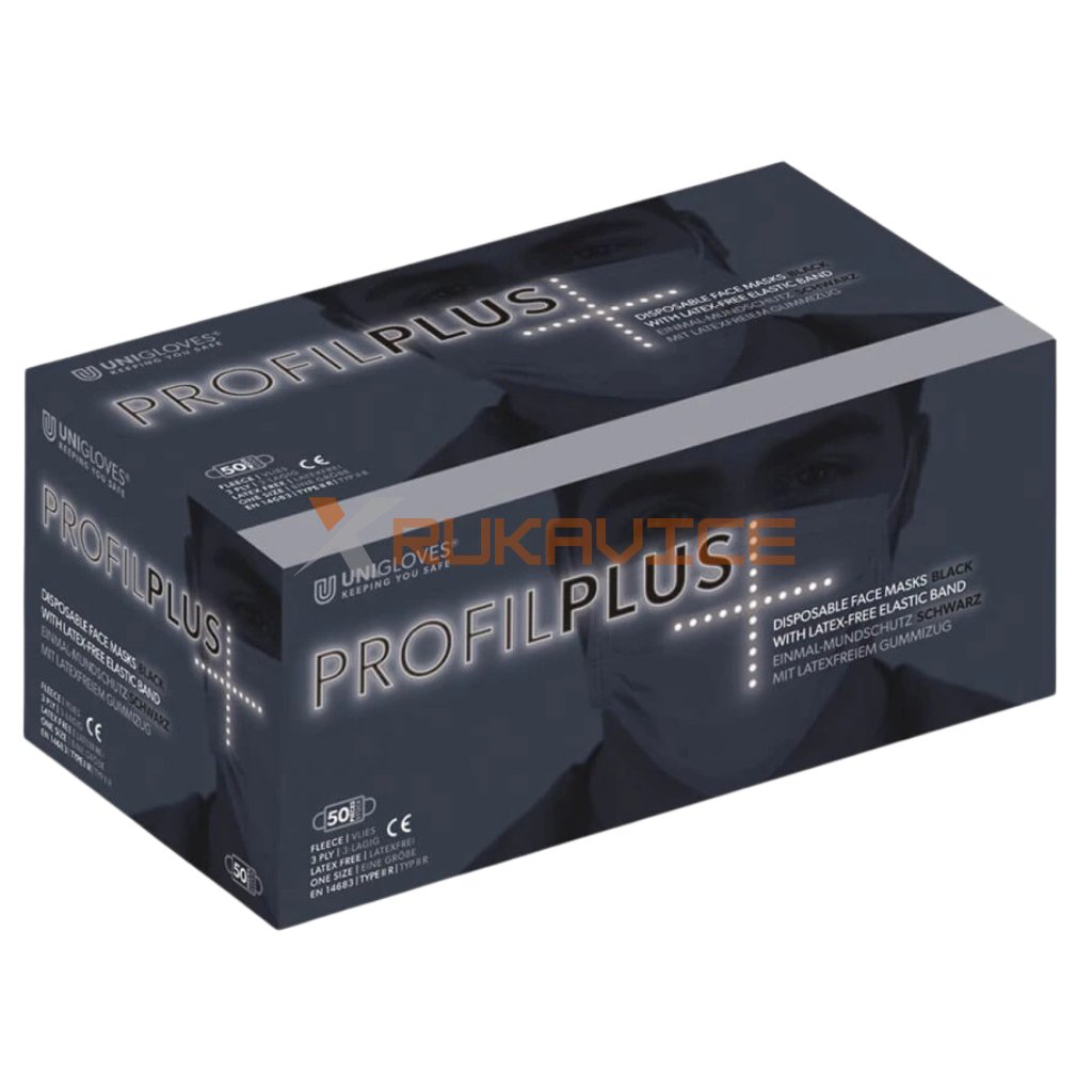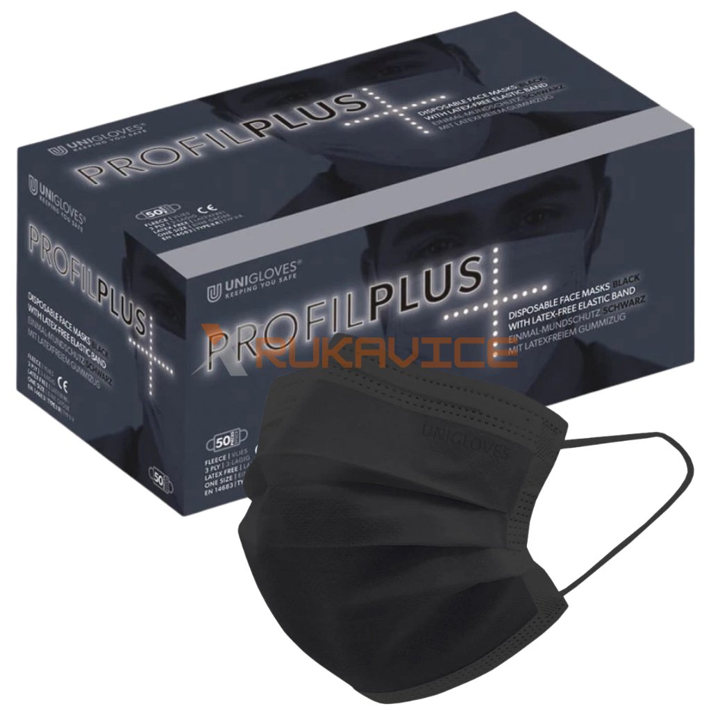 Čierne rúška trojvrstvové Profil Plus 50 ks