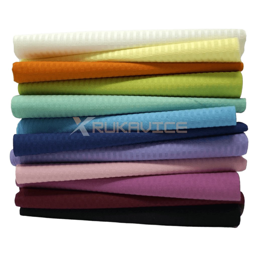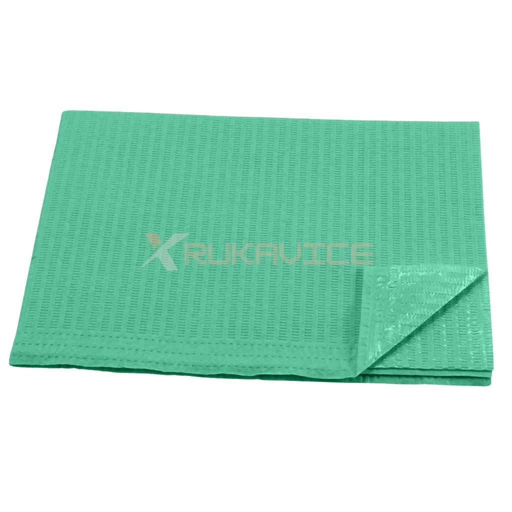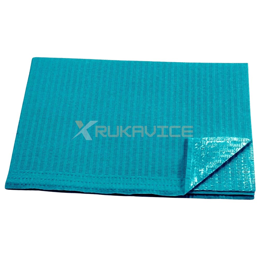 Tieto kvalitné dentálne obrúsky sú vyrobené z troch vrstiev jemnej celulózovej vaty s gramážou 28 g/m², ktoré sú doplnené o spodnú vrstvu z polyetylénovej fólie s hrúbkou 8 μm. Kombinácia týchto materiálov zabezpečuje maximálnu absorpciu tekutín a zároveň úplnú vodotesnosť. Vrchné celulózové vrstvy efektívne zachytávajú vlhkosť, zatiaľ čo PE fólia spoľahlivo bráni jej presiaknutiu. Oblečenie pacienta tak zostáva počas celého zákroku suché, čisté a chránené.