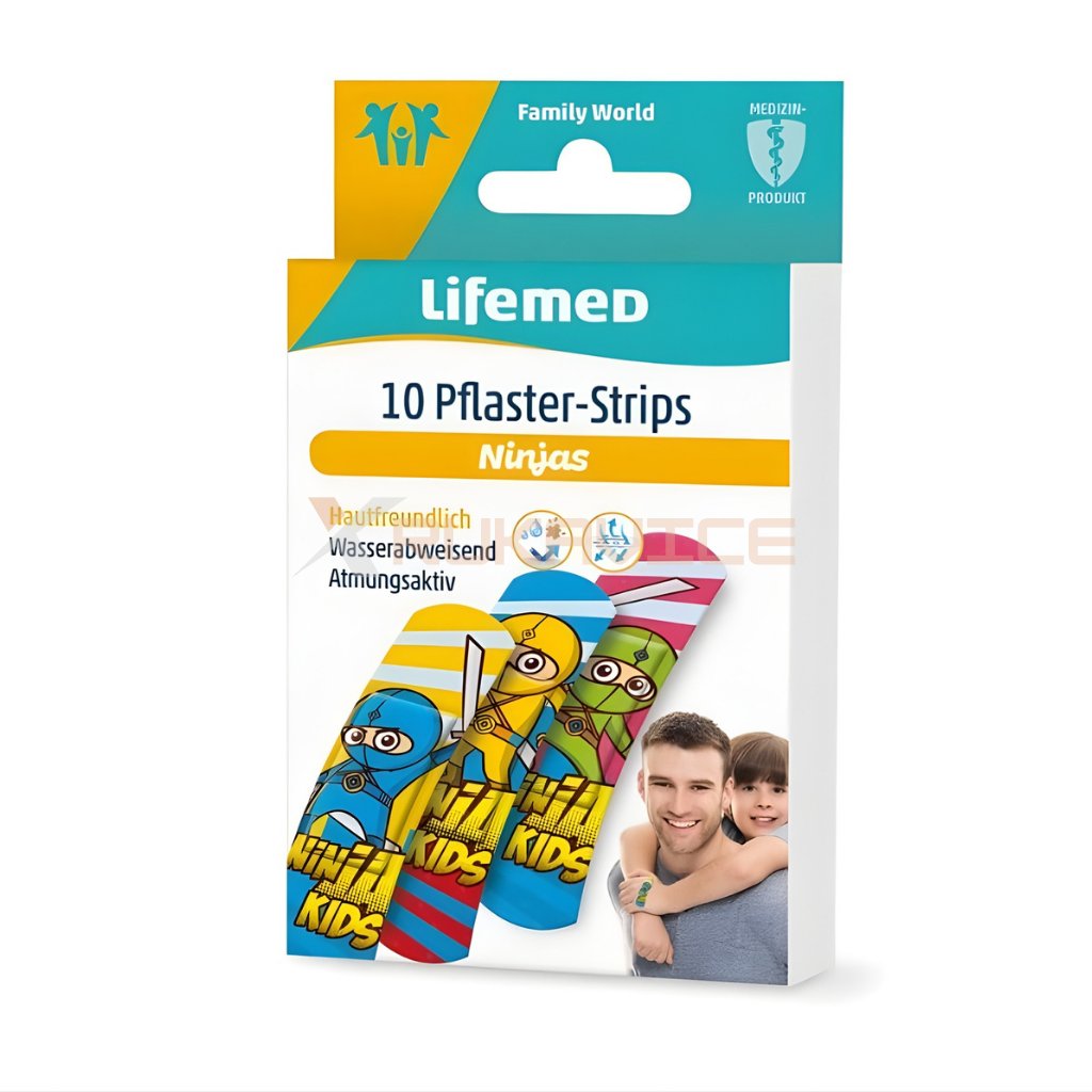 Farebné detské náplasti s motívom ninja vo veľkosti 60 × 17 mm sú určené na ošetrenie drobných poranení u detí rôzneho veku. Veselé obrázky pomáhajú deťom prekonať obavy z ošetrovania rán a robia celý proces príjemnejším doma, v škôlke aj na cestách.