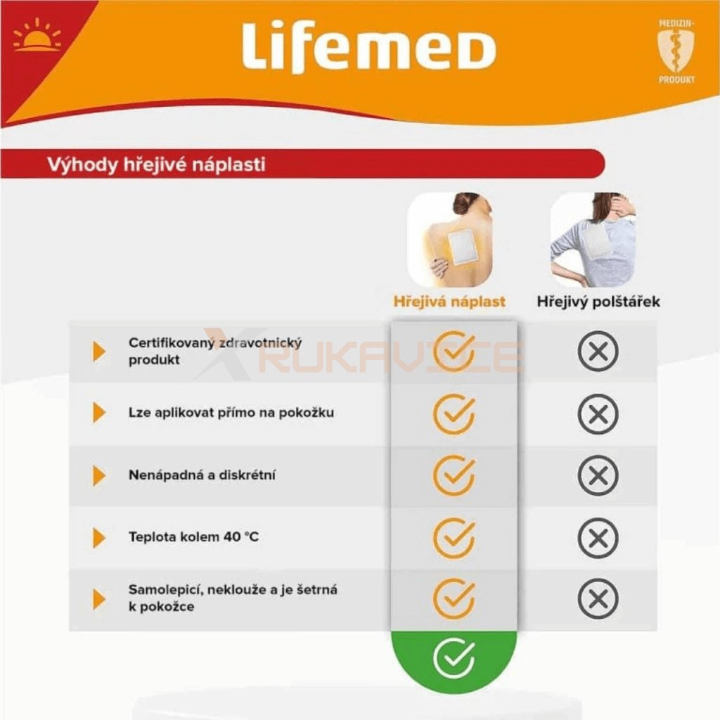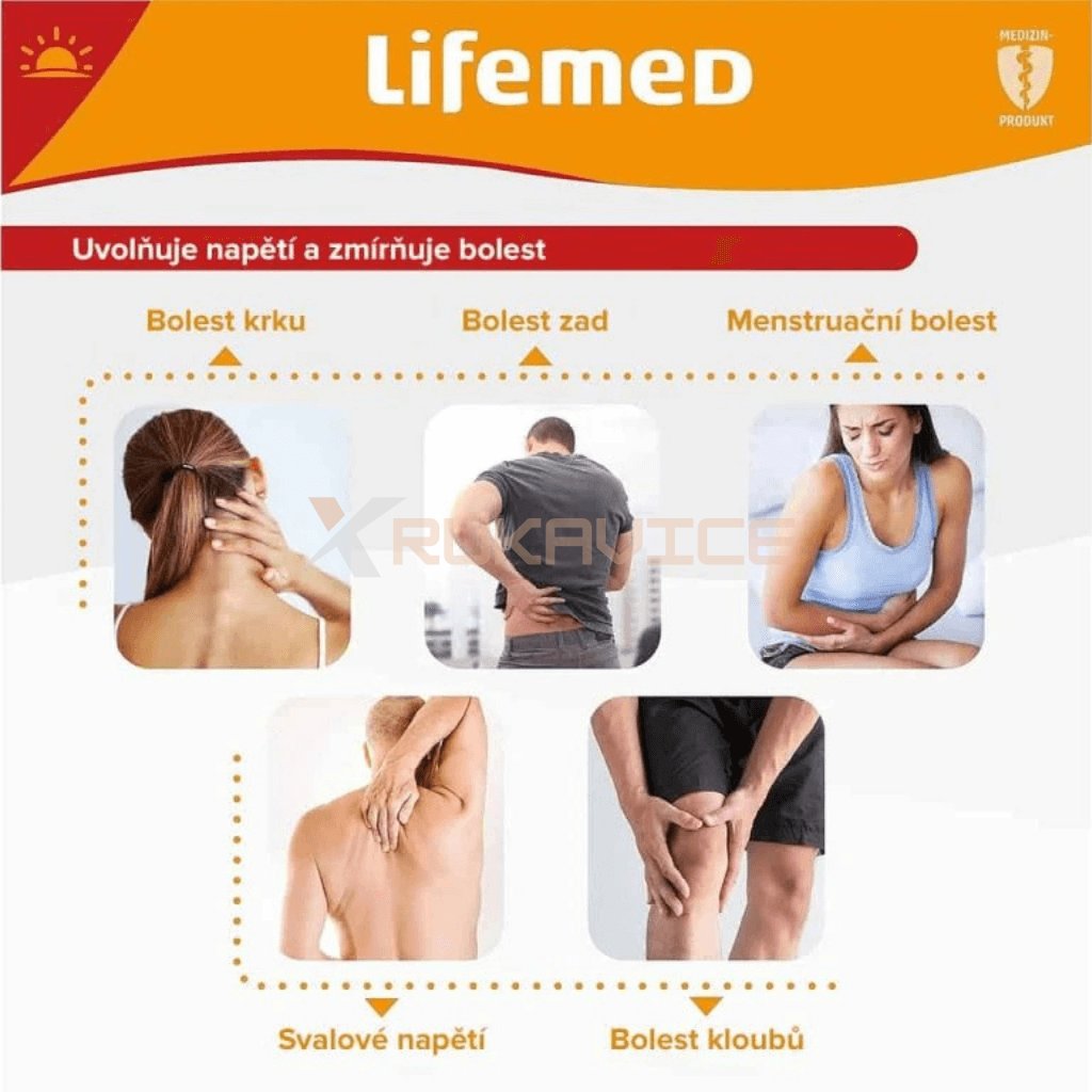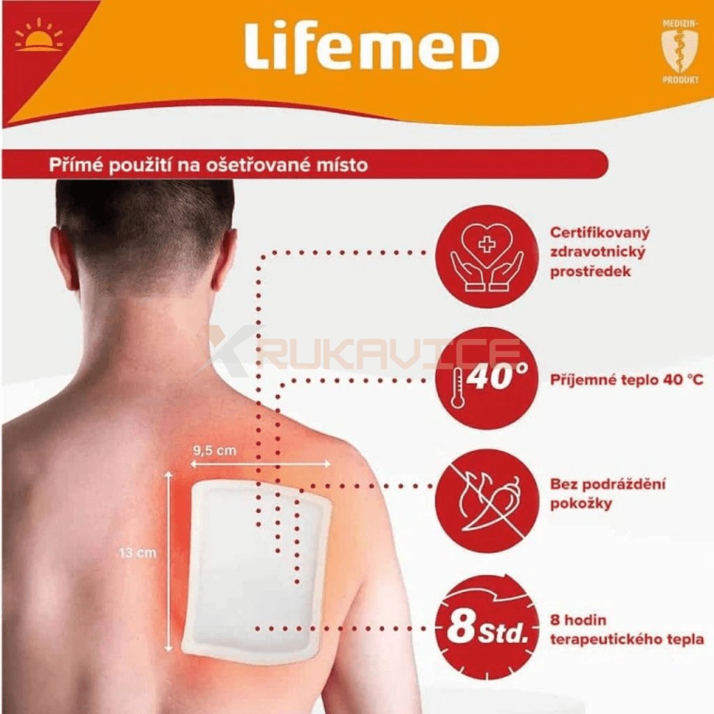 Hrejivá náplasť Lifemed 13 × 9,5 cm je praktická samozohrievacia náplasť určená na úľavu od svalovej bolesti, napätia a stuhnutosti. Funguje na princípe aktivácie tepla kontaktom so vzduchom, vďaka čomu nevyžaduje žiadny externý zdroj ohrevu. Po aplikácii začne postupne uvoľňovať rovnomerné a príjemné teplo, ktoré pomáha uvoľniť svaly, zmierniť bolesť a podporiť prekrvenie postihnutej oblasti.