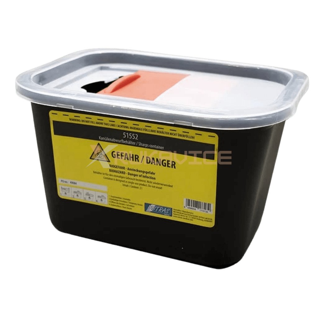 S objemom 2 litre a rozmermi 11 × 10 × 21 cm poskytuje dostatočnú kapacitu na každodenné použitie v ambulanciách, nemocniciach aj laboratóriách. Priehľadné viečko umožňuje jednoduchú vizuálnu kontrolu naplnenia, zatiaľ čo spoľahlivé uzavretie chráni pred únikom kontaminovaného materiálu. Nádoba je určená na jednorazové použitie a zabezpečuje hygienickú a kontrolovanú likvidáciu ostrého odpadu.