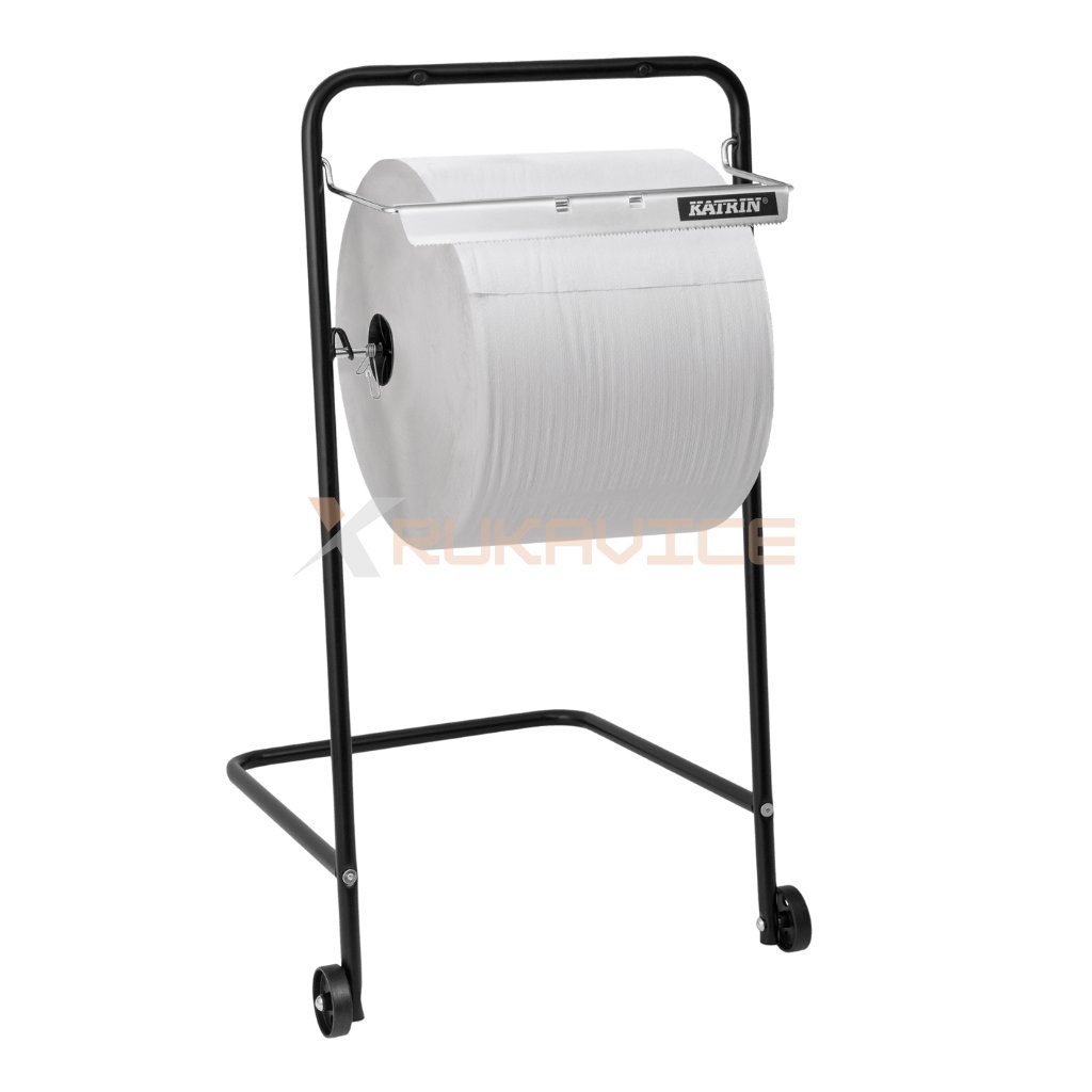 Pevný podlahový dávkovač Katrin je určený pre priemyselné papierové utierky so šírkou rolky až 40 cm. Vďaka kolieskam umožňuje jednoduchý presun a je ideálny pre prevádzky s vysokou spotrebou papierových utierok, ako sú dielne, výrobné haly či sklady.